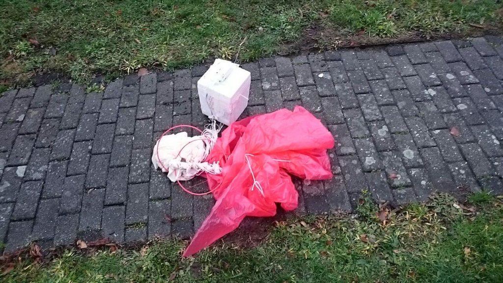 EDIT: Wie sich später herausgestellt hat, hat Happysat die gleiche Sonde 2015 schon einmal eingesammelt, nachdem sie ein paar Monate im Baum hing. Er sendete sie im September 2018 zurück und nach einem weiteren Flug im Oktober, der in einem Wohngebiet in Belgien landete, war dies der dritte Flug der Sonde. Die Fotos von Happysat sind unten.